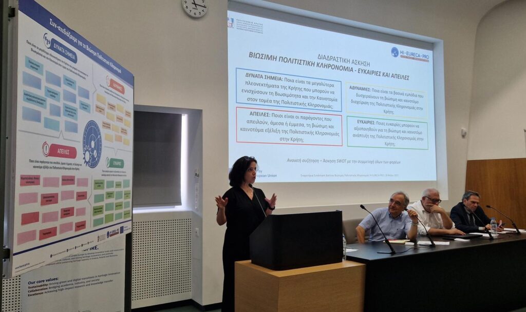 The coordinator of HI-EURECA-PRO, Professor Theocharis Tsoutsos from the School of Chemical and Environmental Engineering at the Technical University of Crete, outlined the opportunities offered by HI-EURECA-PRO for Sustainable Cultural Heritage: Innovation, Synergies, and Development Prospects in Crete.
